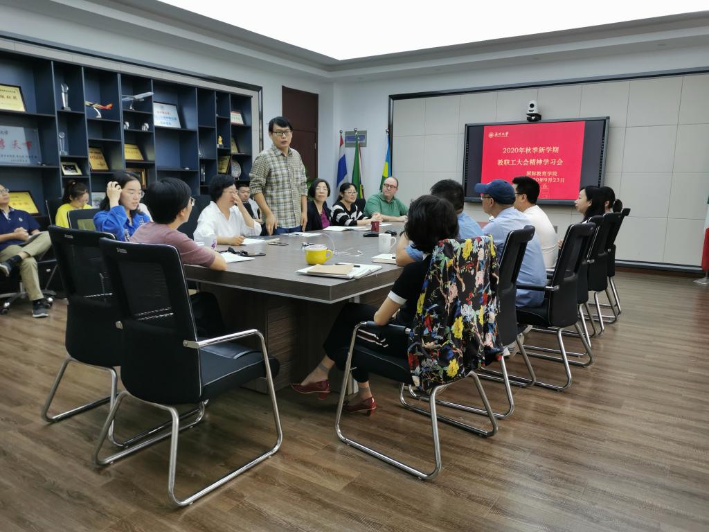 9月23日,我院全体教职工在国际楼311会议室深入学习2020年秋季新学期教职工大会精神,大会学习了谢树华书记的《扛起发展新使命,奋力谱写新篇章》以及赵敏校长的《坚定信心、乘势而上,以“重要窗口”标准奋力推进高质量发展》等相关文件,与会的教师们踊跃发言,积极讨论,以下是部分教师的发言: